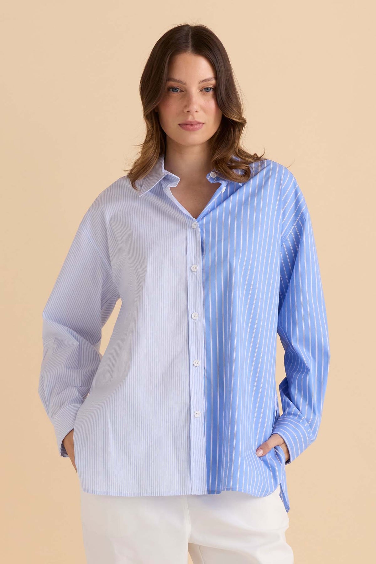 Betty Basics Stevie Shirt Blue Stripe Contrast